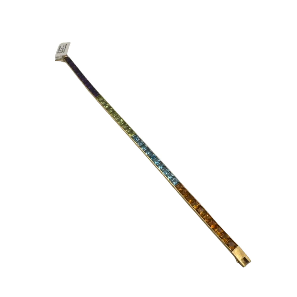 Ce bracelet élégant en or jaune 18 carats allie un savoir-faire intemporel à l'éclat des pierres précieuses colorées. Cette pièce exclusive est sertie d' améthyste, de péridot, de topaze bleue et de citrine – une harmonie de couleurs vibrantes évoquant le soleil, la mer et la nature.